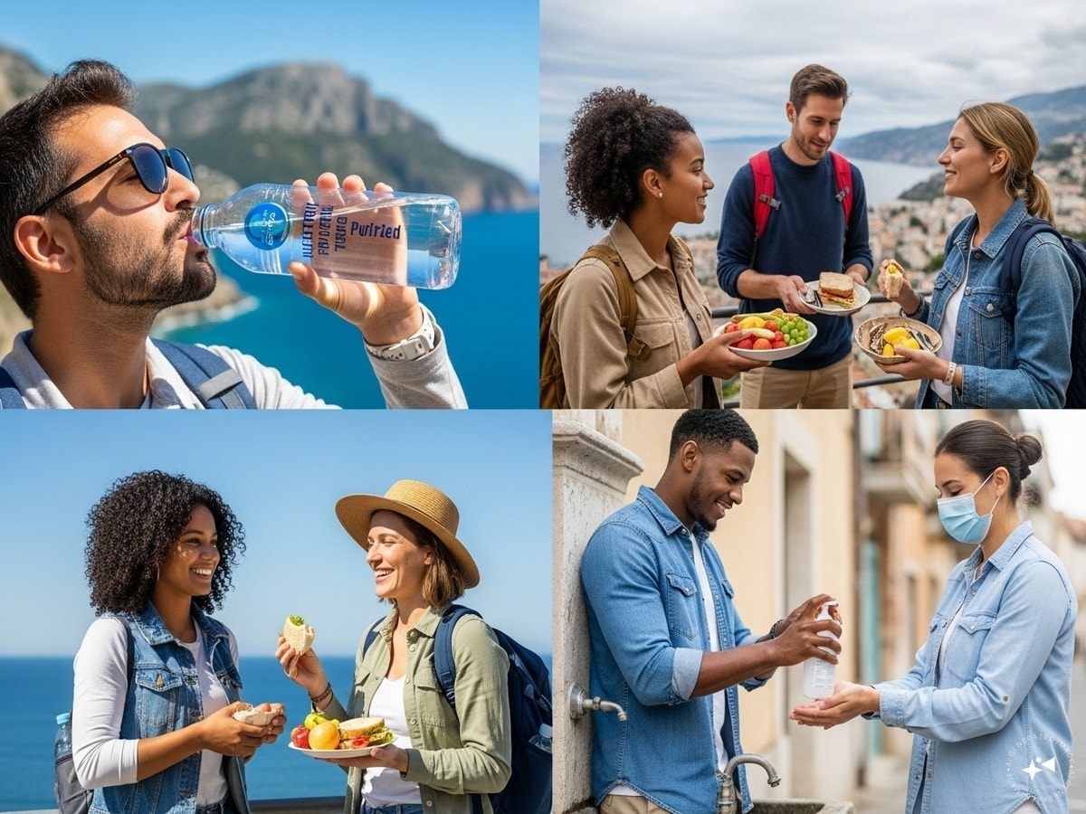 Drink only bottled or filtered water. To avoid food poisoning, do not eat stale food. Keep digestion active with lemon water or herbal tea. Avoid very sweet drinks or carbonated drinks.